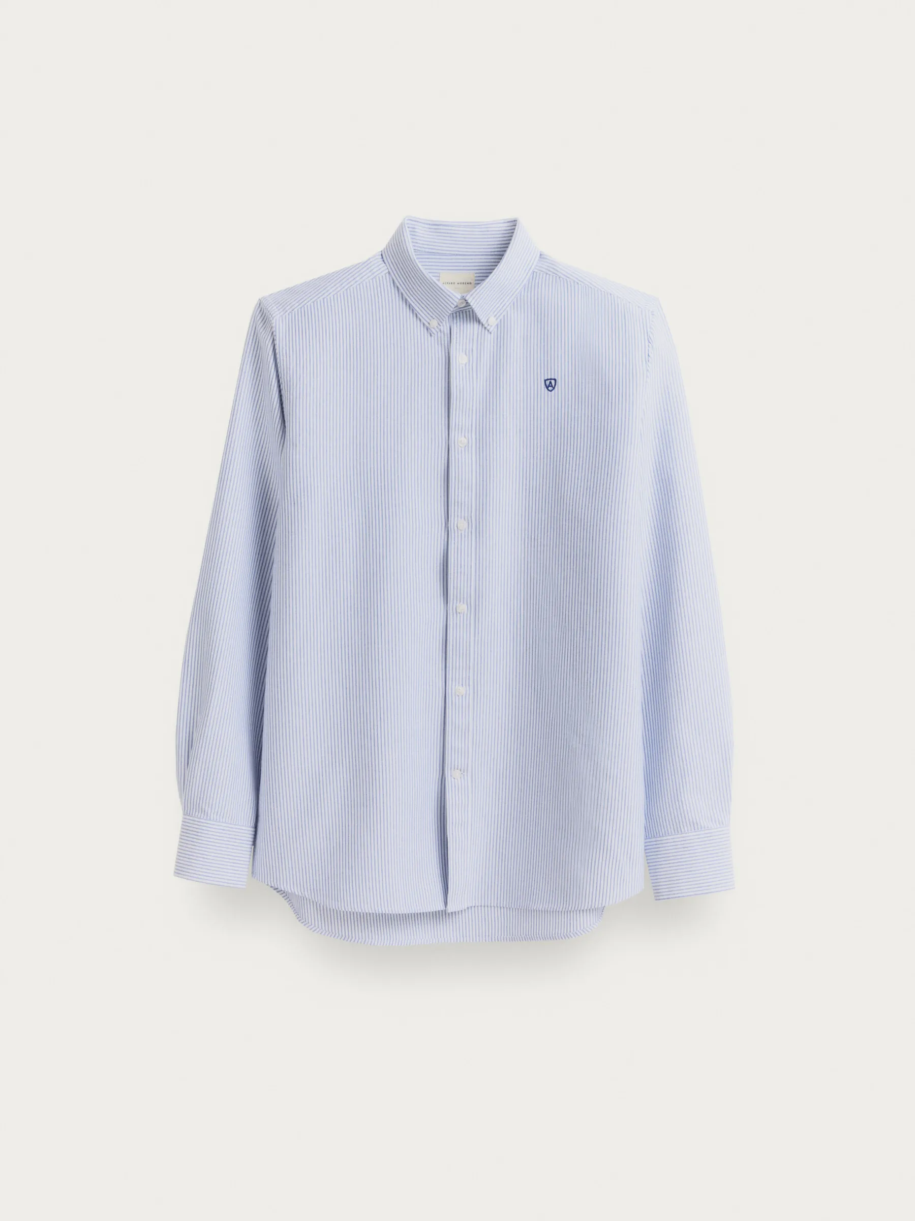 Camisa a rayas confeccionada en algodón. Cuenta con cuello clásico de botón, manga larga con puños simples y logo de la marca grabado en el frontal. Corte regular fit.