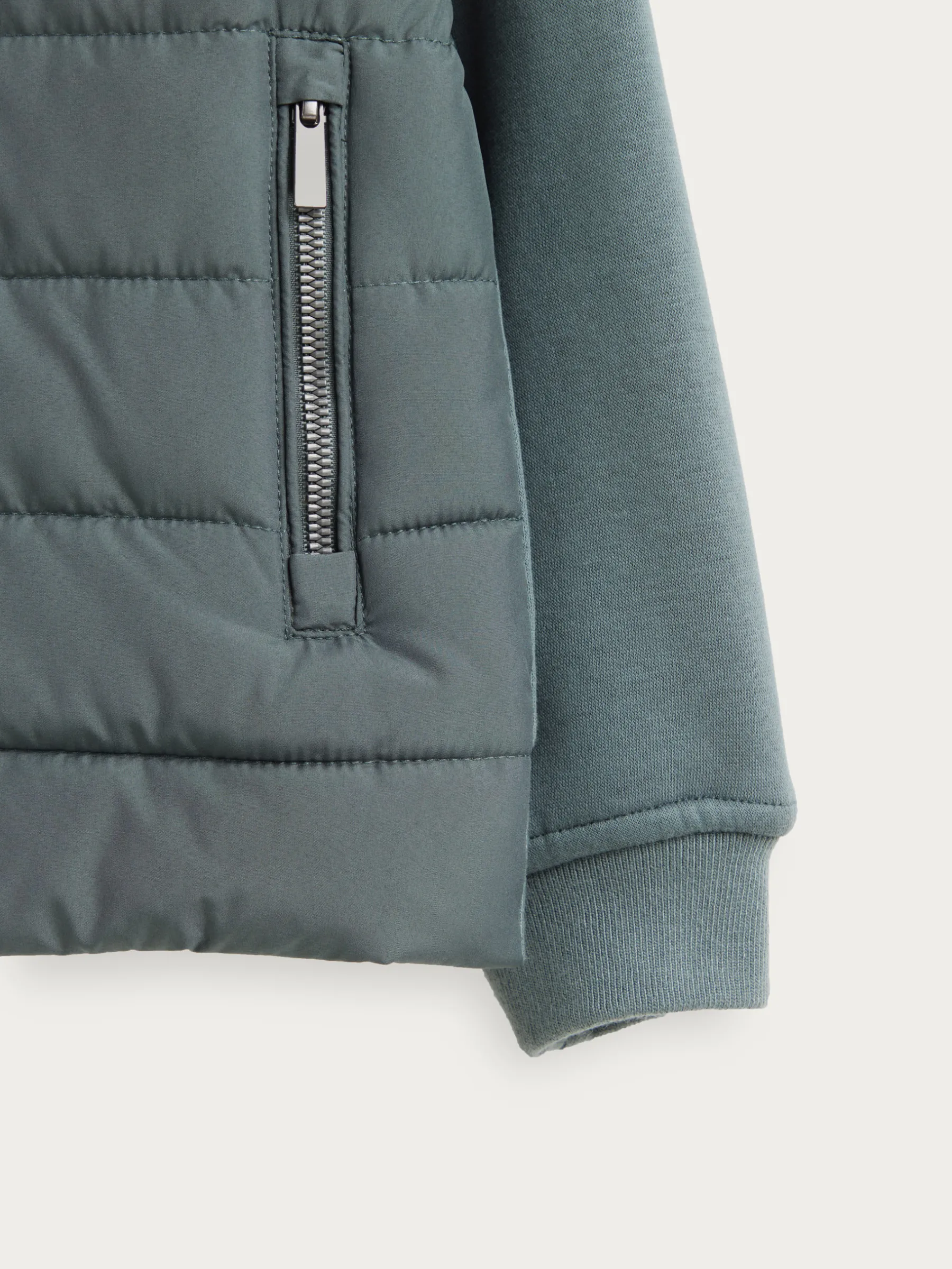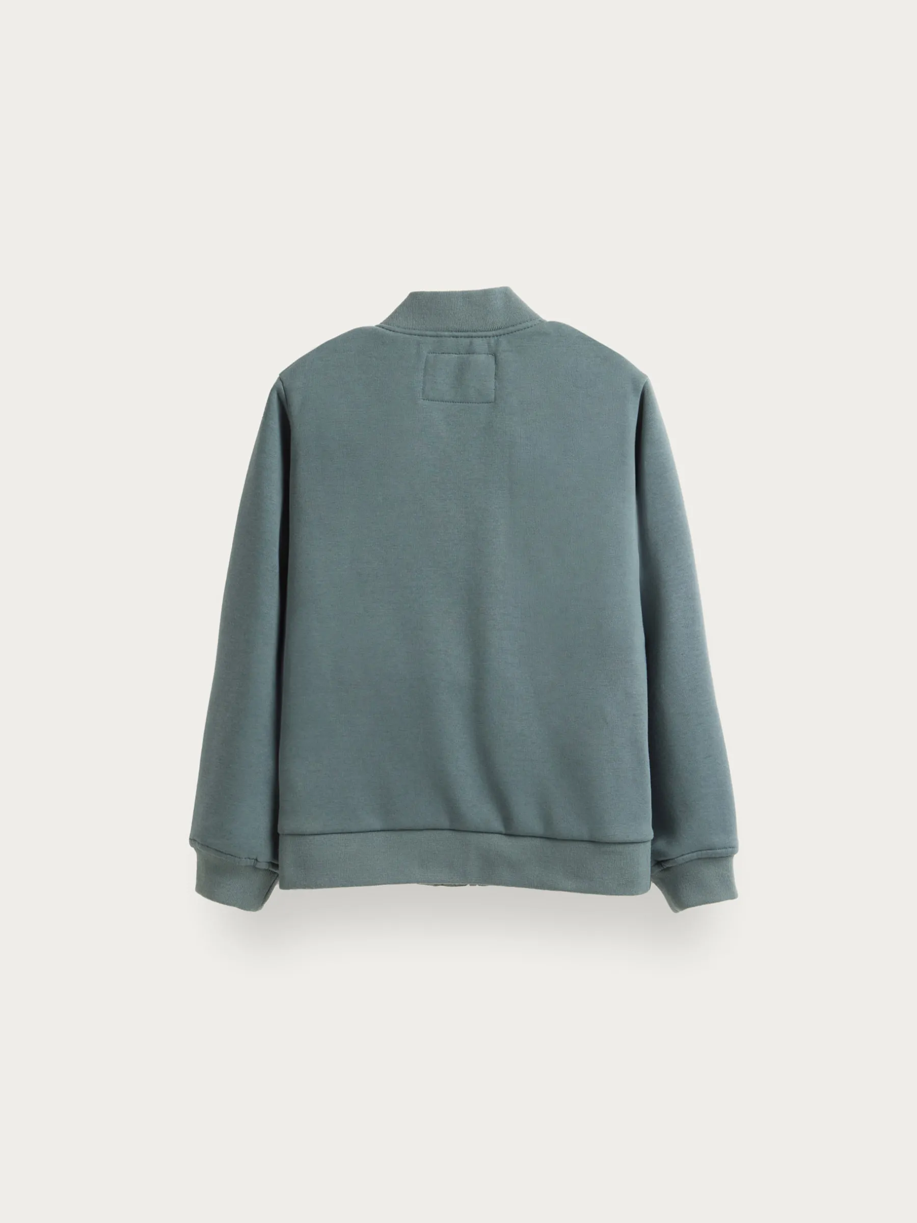 Cazadora estilo bomber con cuello y mangas en tejido de punto. Cuenta en su parte delantera con cierre central mediante cremallera, dos bolsillos y parche con el logo de la marca grabado en el pecho.
