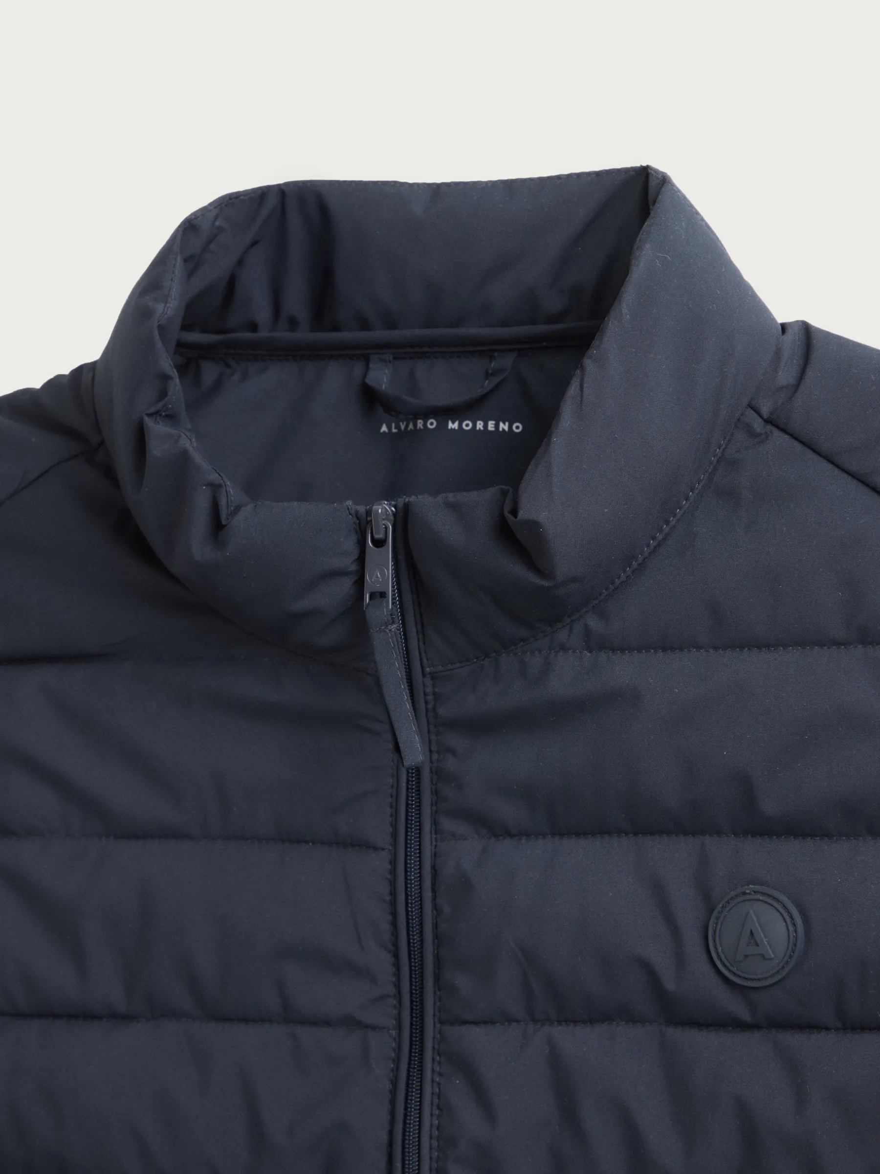 Chaleco con cierre central mediante cremallera y dos bolsillos en la cintura. Cuenta con cuello subido, logo grabado en el frontal y sisa y cintura en punto elástico. Corte regular fit.