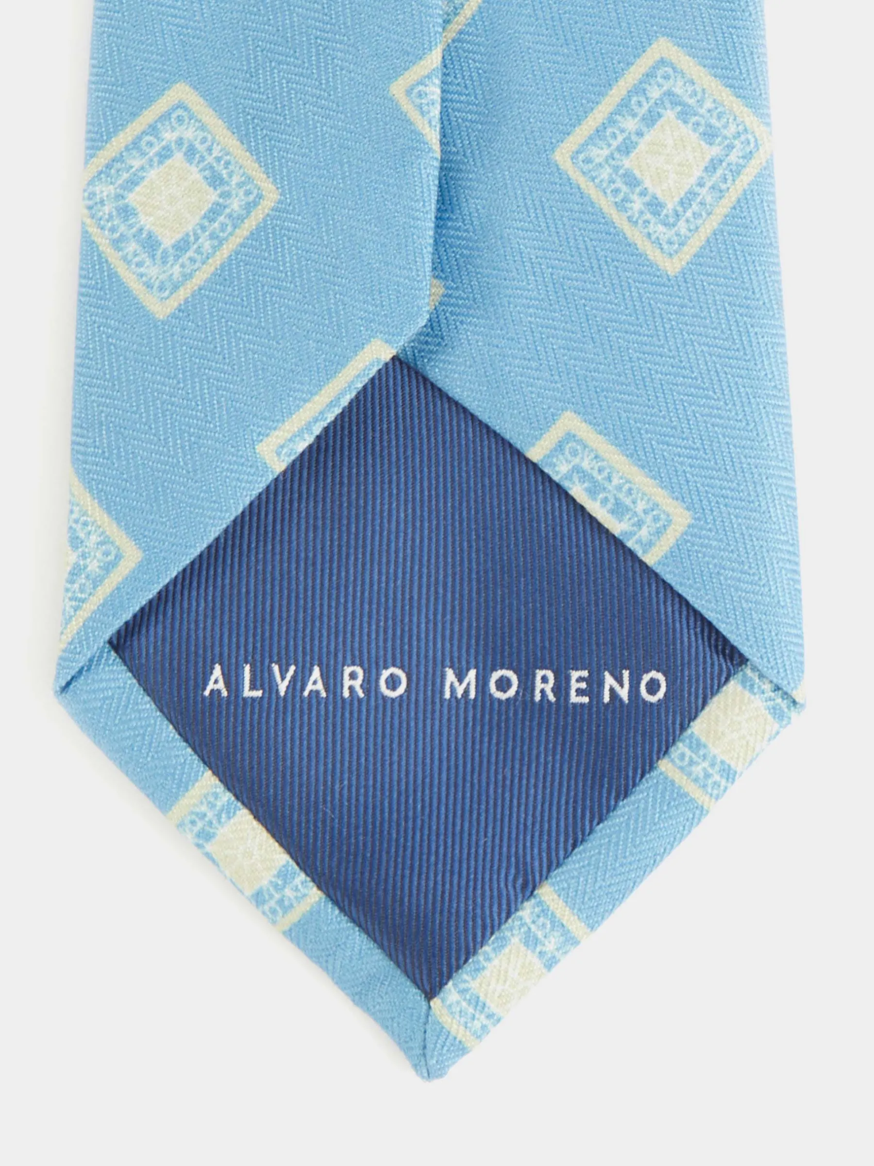 Corbata con diseño estampado personalizado confeccionada en 100% poliéster. Cuenta con el logo de la marca grabado en el interior.