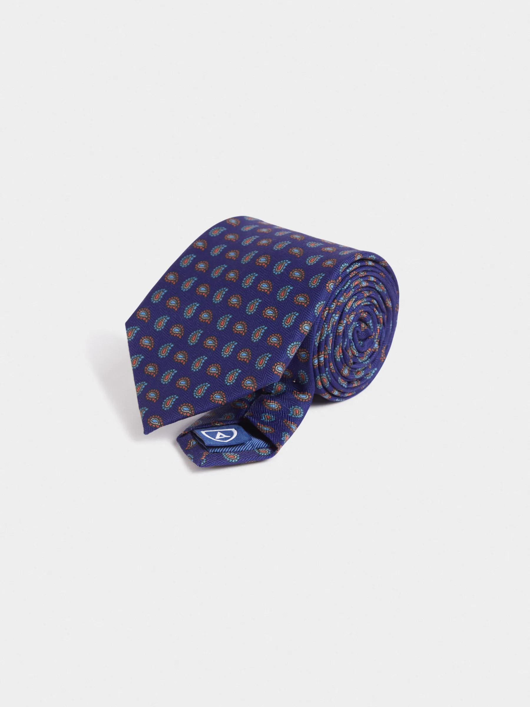 Corbata con diseño estampado personalizado confeccionada en 100% poliéster. Cuenta con el logo de la marca grabado en el interior.