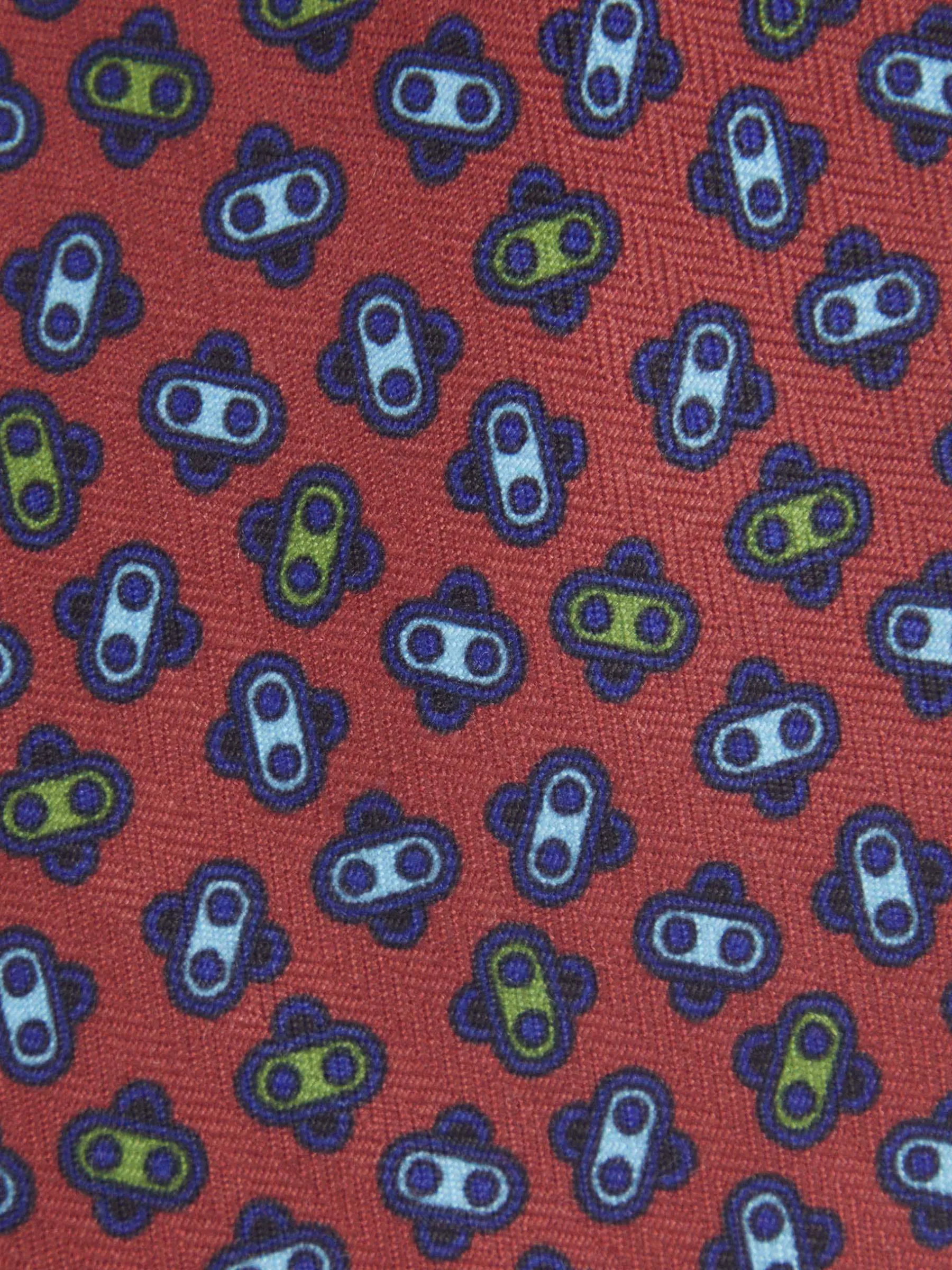 Corbata con diseño estampado personalizado confeccionada en 100% poliéster. Cuenta con el logo de la marca grabado en el interior.