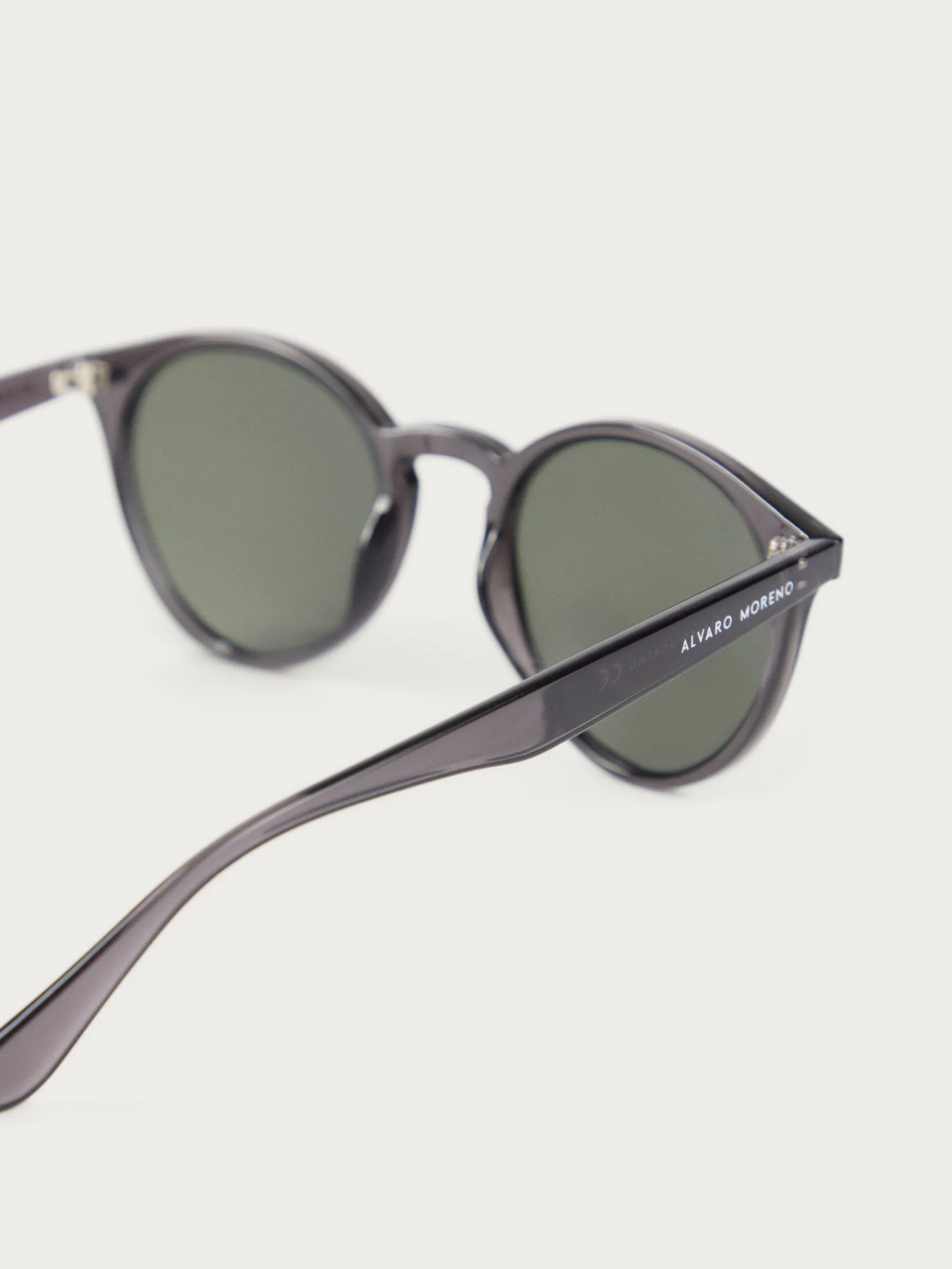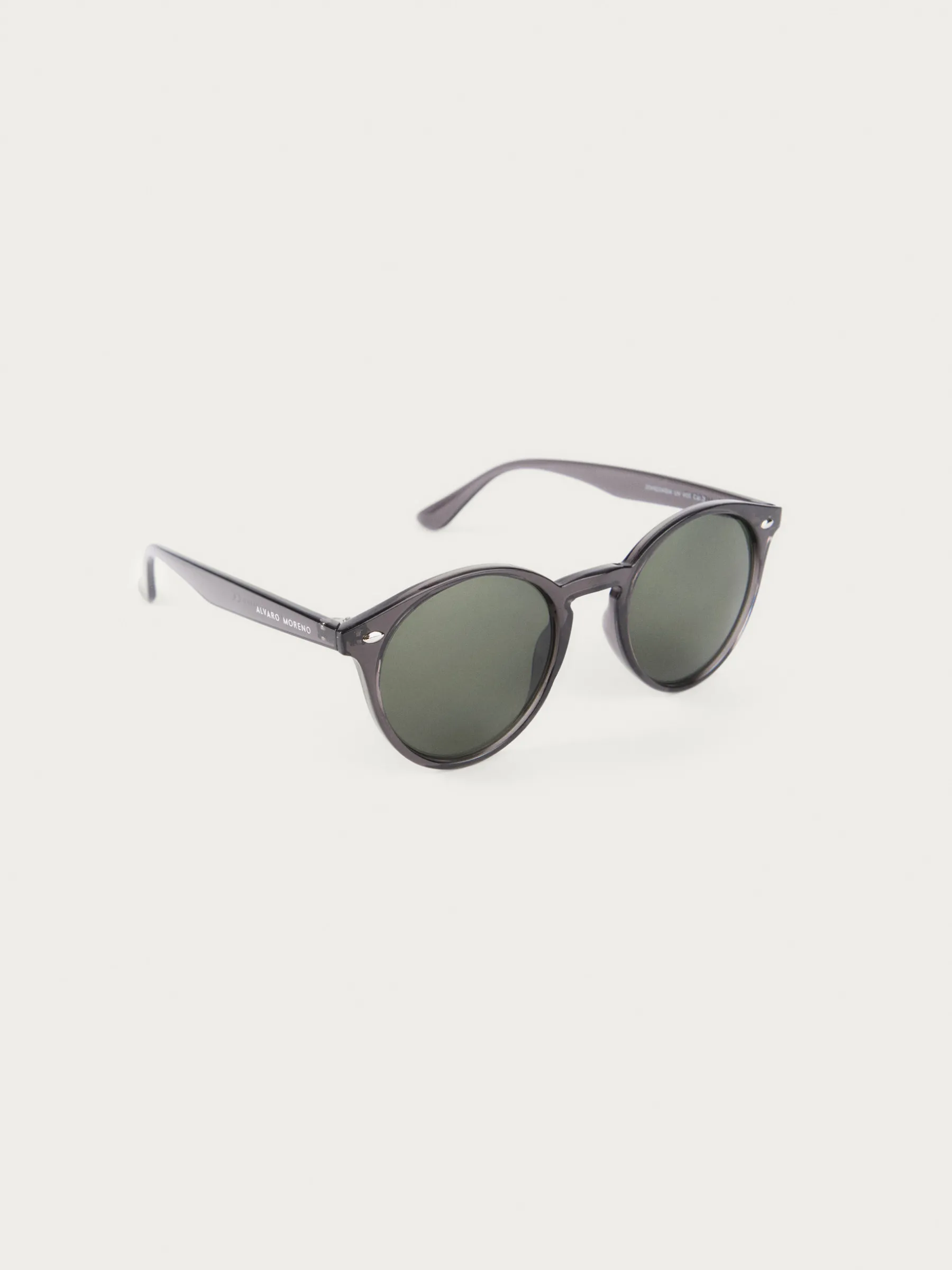 Gafas de sol de lentes redondas y patillas en efecto madera que cuentan con protección ultravioleta. Incluye caja y funda protectora.