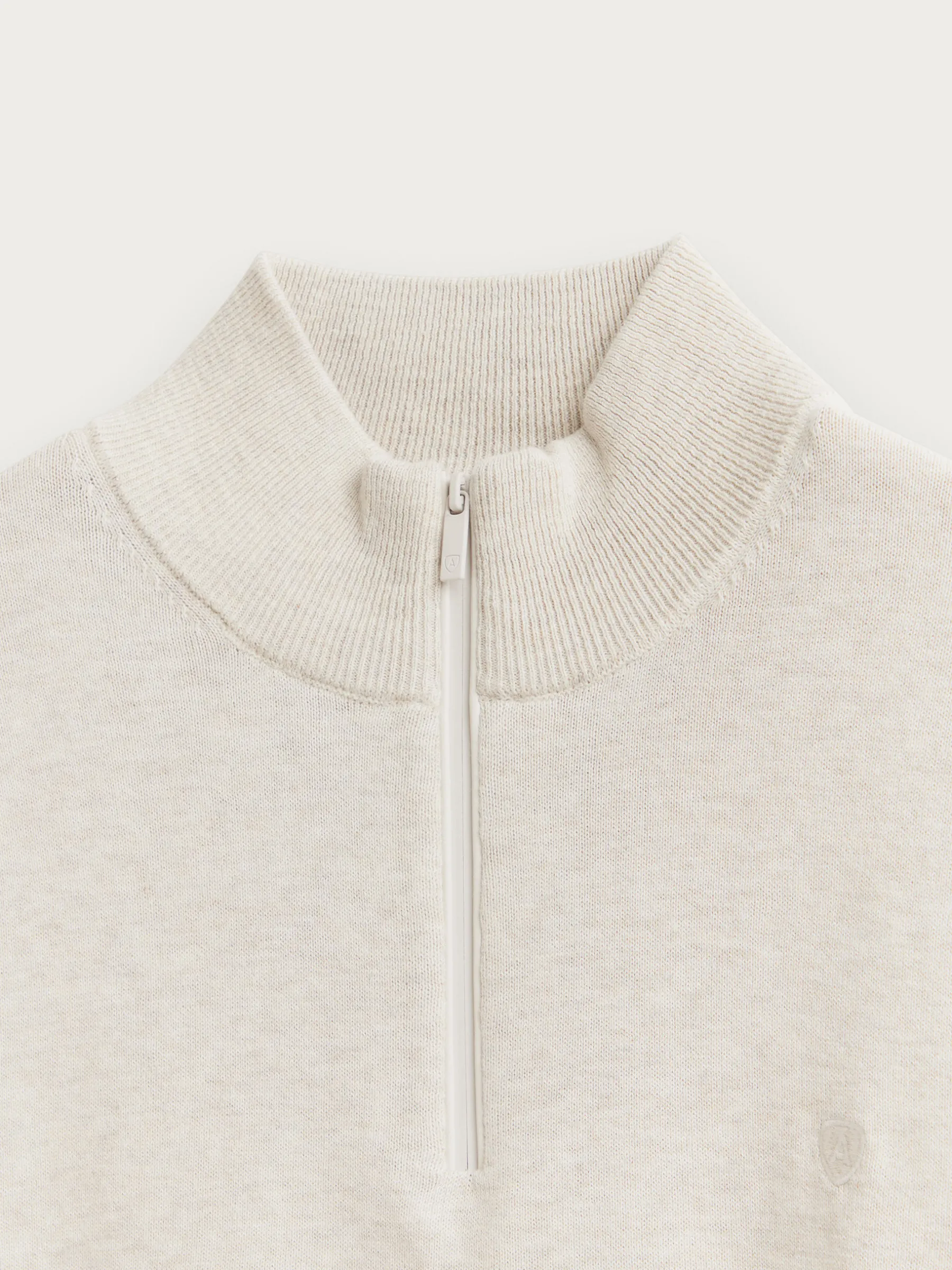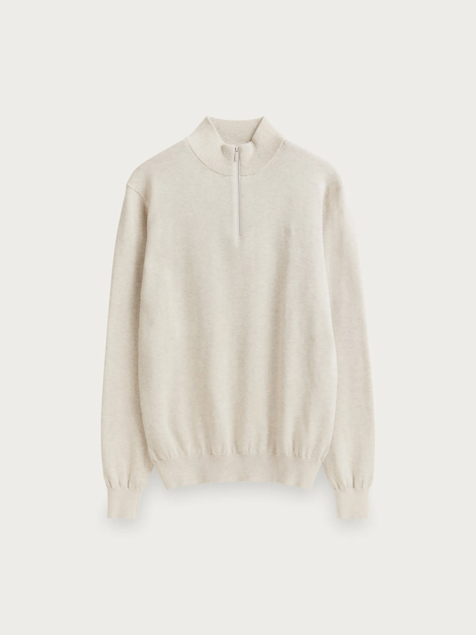 Jersey de corte regular confeccionado en algodón. Cuello alto con medio cierre de cremallera. Logo bordado en el frontal al tono. Cuello, puños y bajo en acabado elástico.