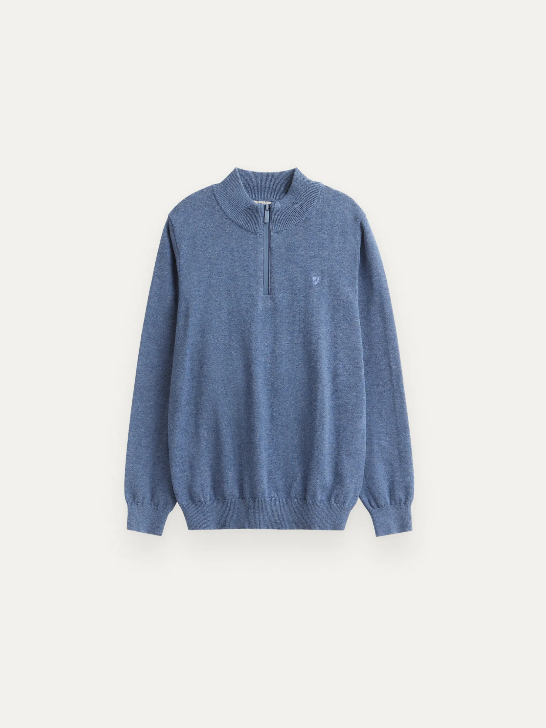 Jersey de corte regular confeccionado en algodón. Cuello alto con medio cierre de cremallera. Logo bordado en el frontal al tono. Cuello, puños y bajo en acabado elástico.