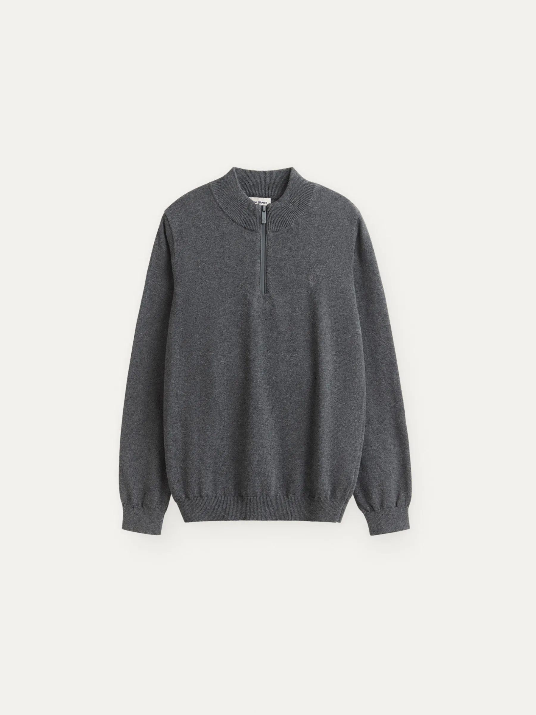 Jersey de corte regular confeccionado en algodón. Cuello alto con medio cierre de cremallera. Logo bordado en el frontal al tono. Cuello, puños y bajo en acabado elástico.