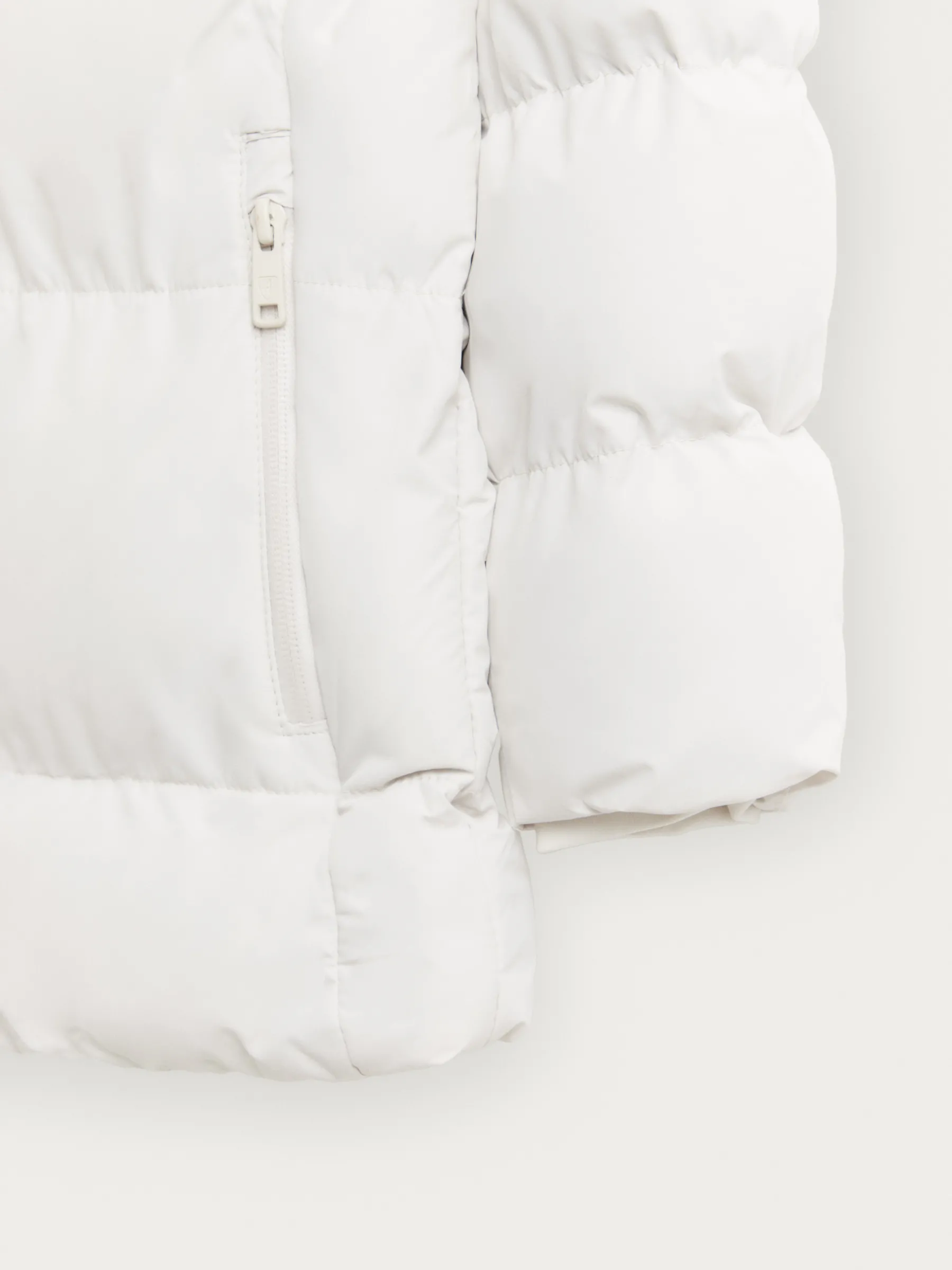 Parka acolchada con cuello subido y gorro ajustable. Cierre central mediante cremallera, dos bolsillos en la cintura con cierre de cremallera y manga larga con doble puño en punto elástico. Detalle personalizado engomado en una de sus mangas. Interior con bolsillo y forrado. Cremalleras termoselladas.