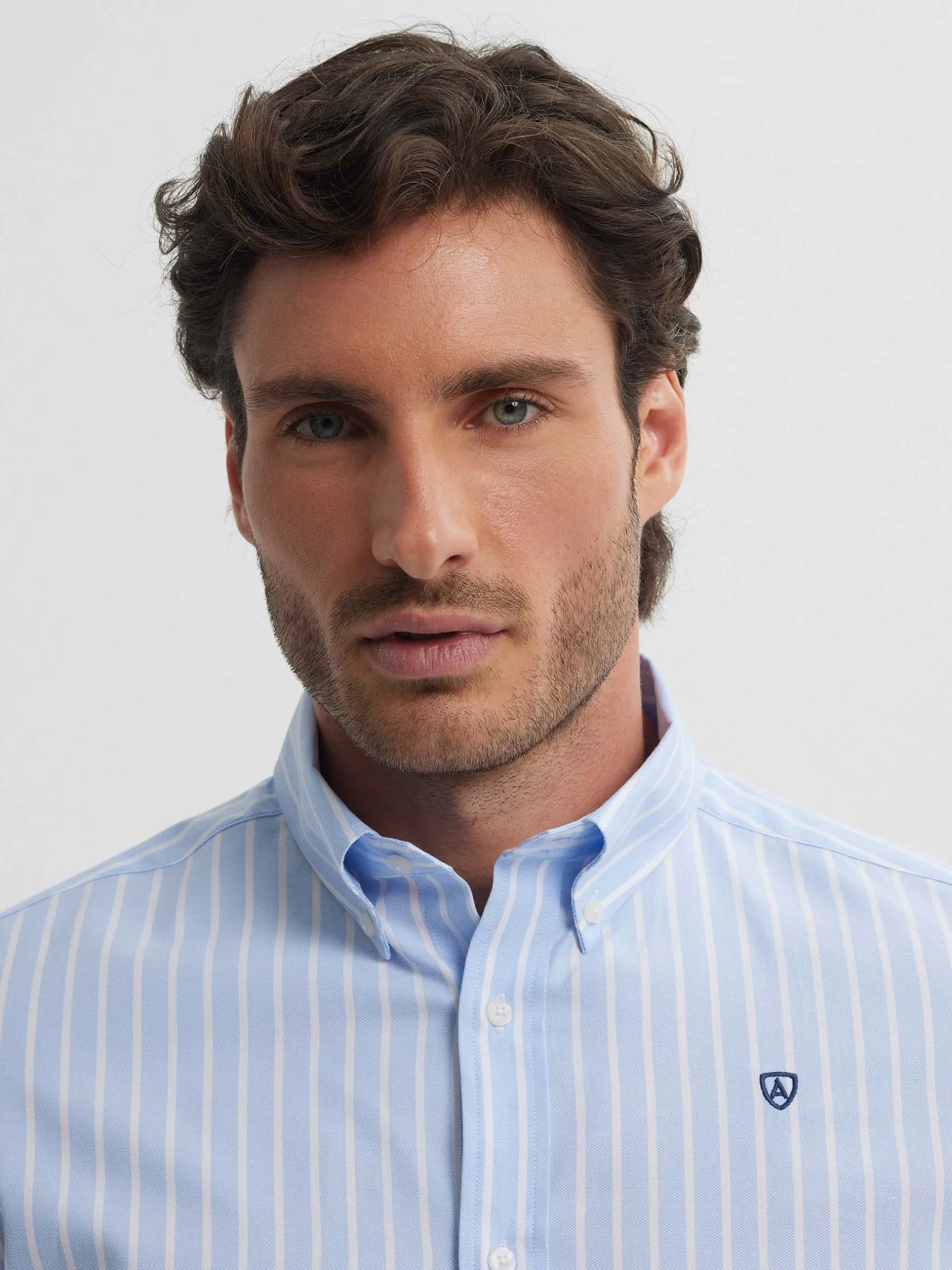 Camisa a rayas confeccionada en algodón. Cuenta con cuello botón, manga larga con puño botón y logo grabado en el frontal al tono. Corte regular fit.