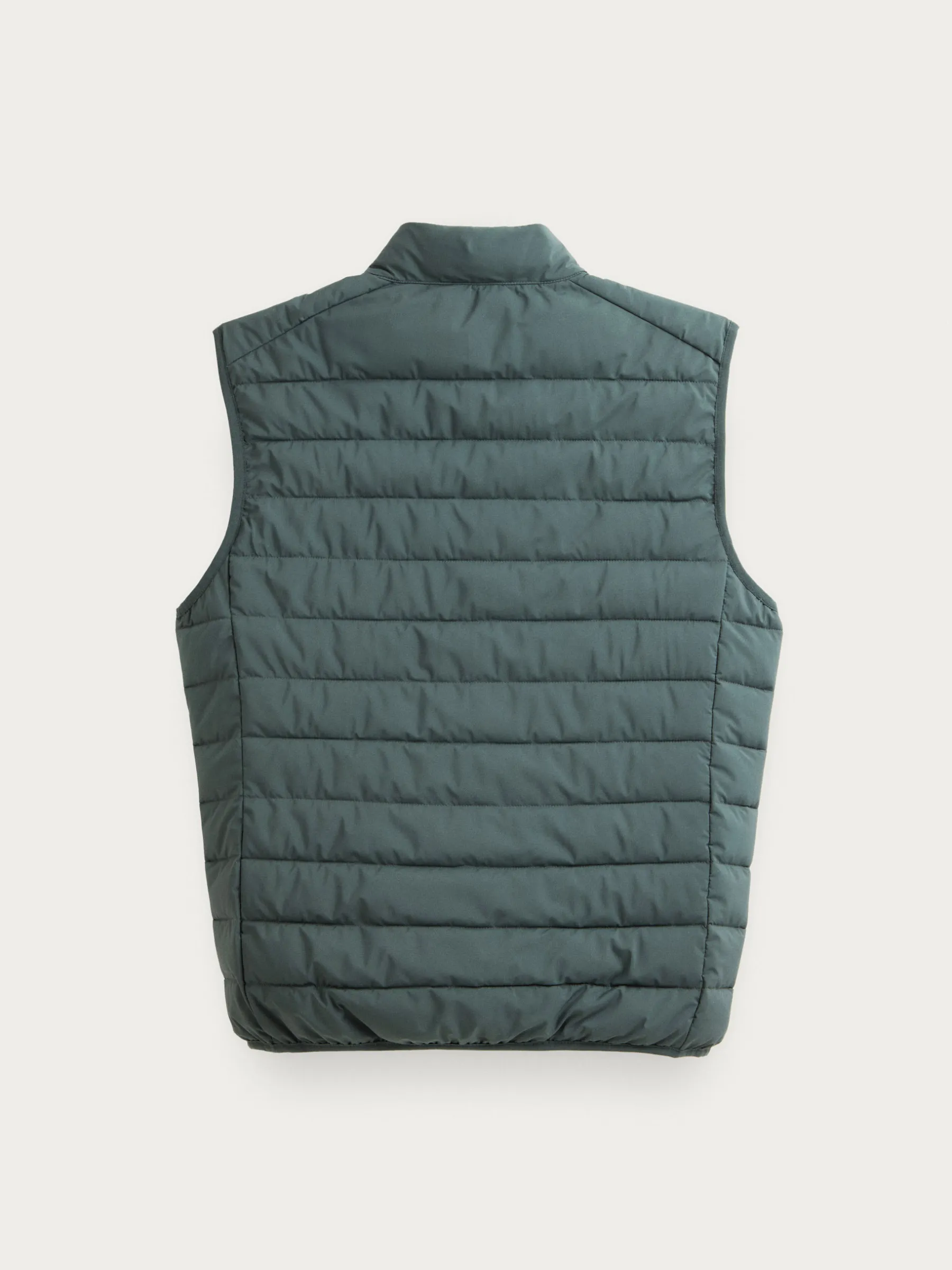 Chaleco con cierre central mediante cremallera y dos bolsillos en la cintura. Cuenta con cuello subido, logo grabado en el frontal y sisa y cintura en punto elástico. Corte regular fit.