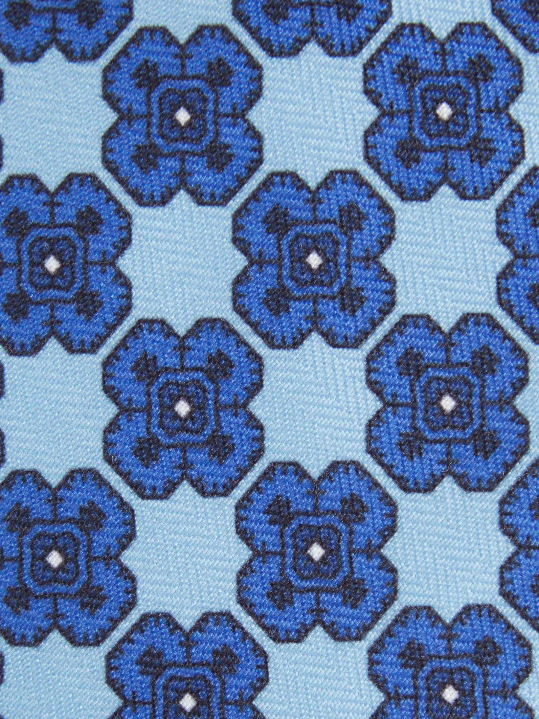 Corbata con diseño estampado personalizado confeccionada en 100% poliéster. Cuenta con el logo de la marca grabado en el interior.