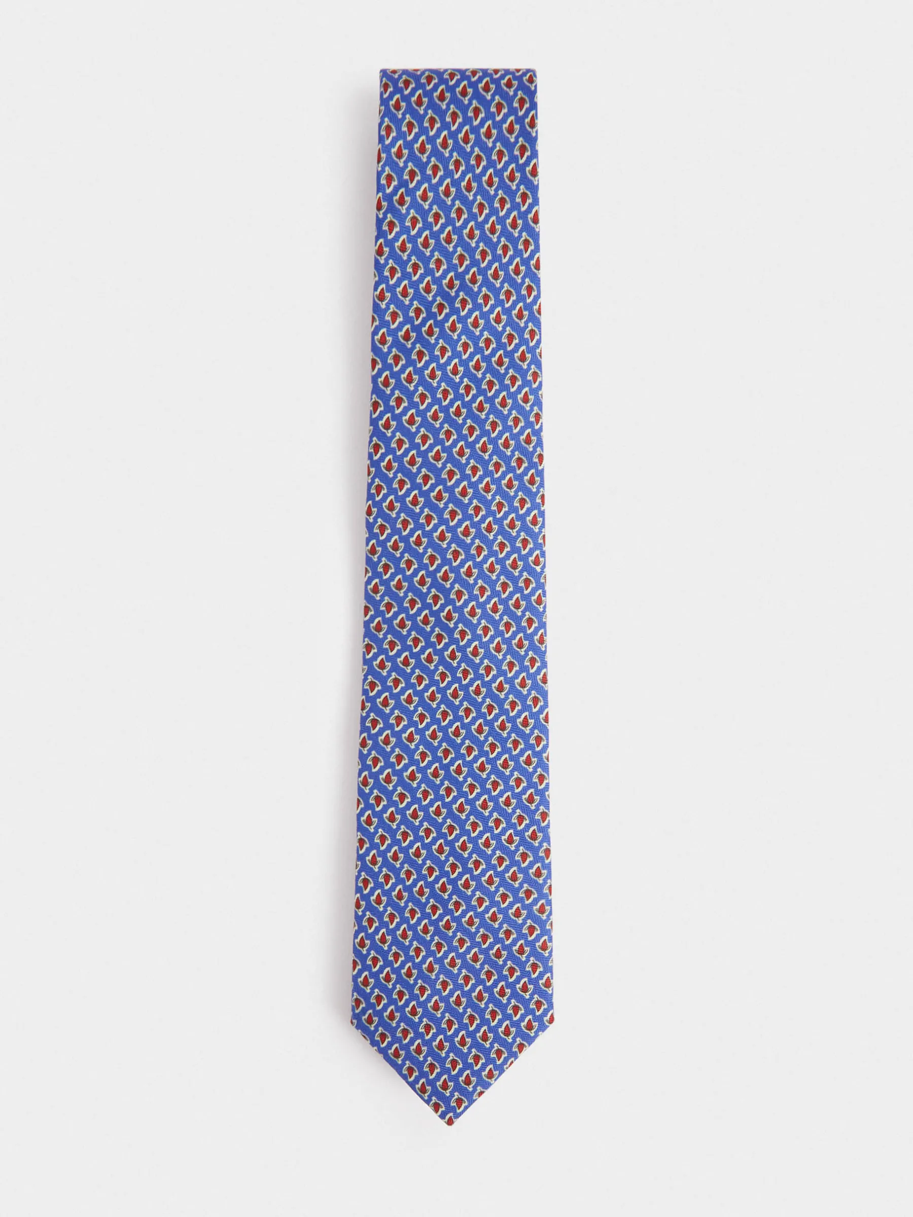 Corbata con diseño estampado personalizado confeccionada en 100% poliéster. Cuenta con el logo de la marca grabado en el interior.