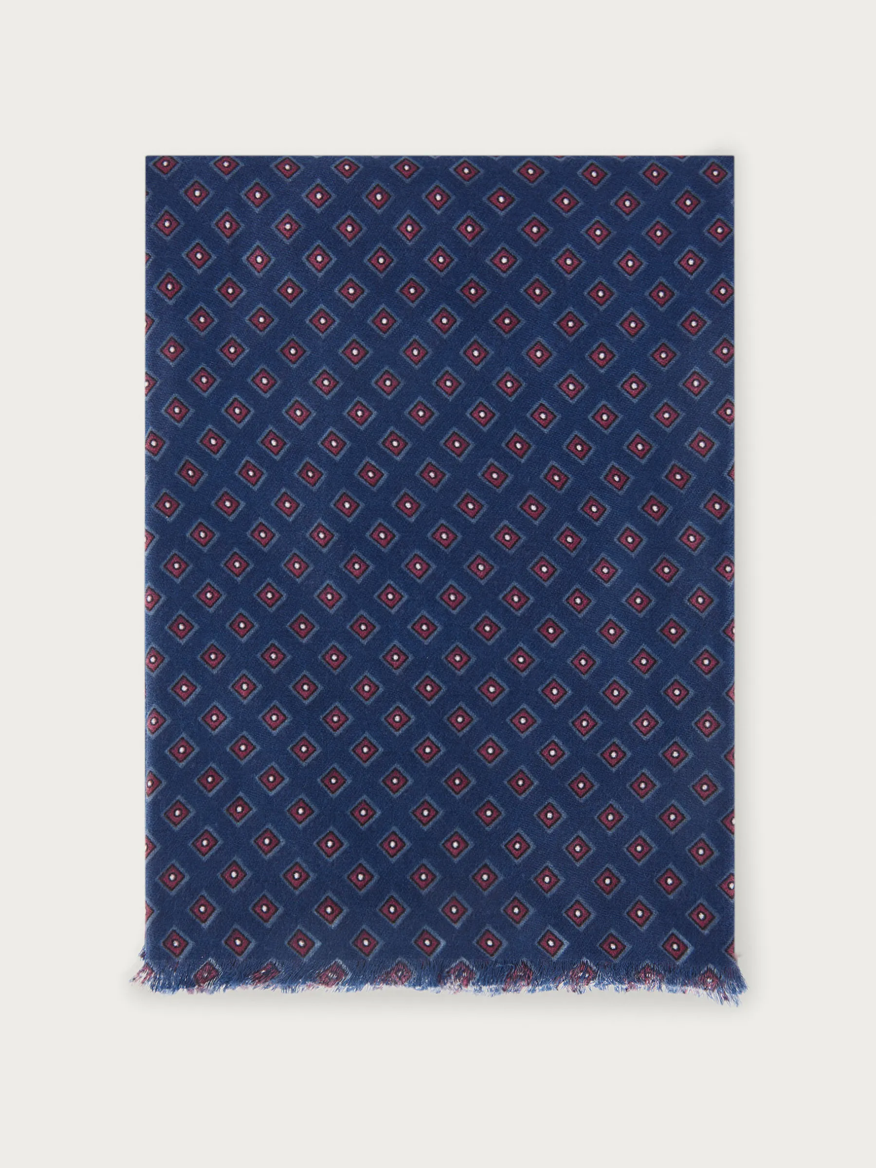Foulard de diseño personalizado estampado confeccionado en tejido suave y cálido. Terminación con flecos.