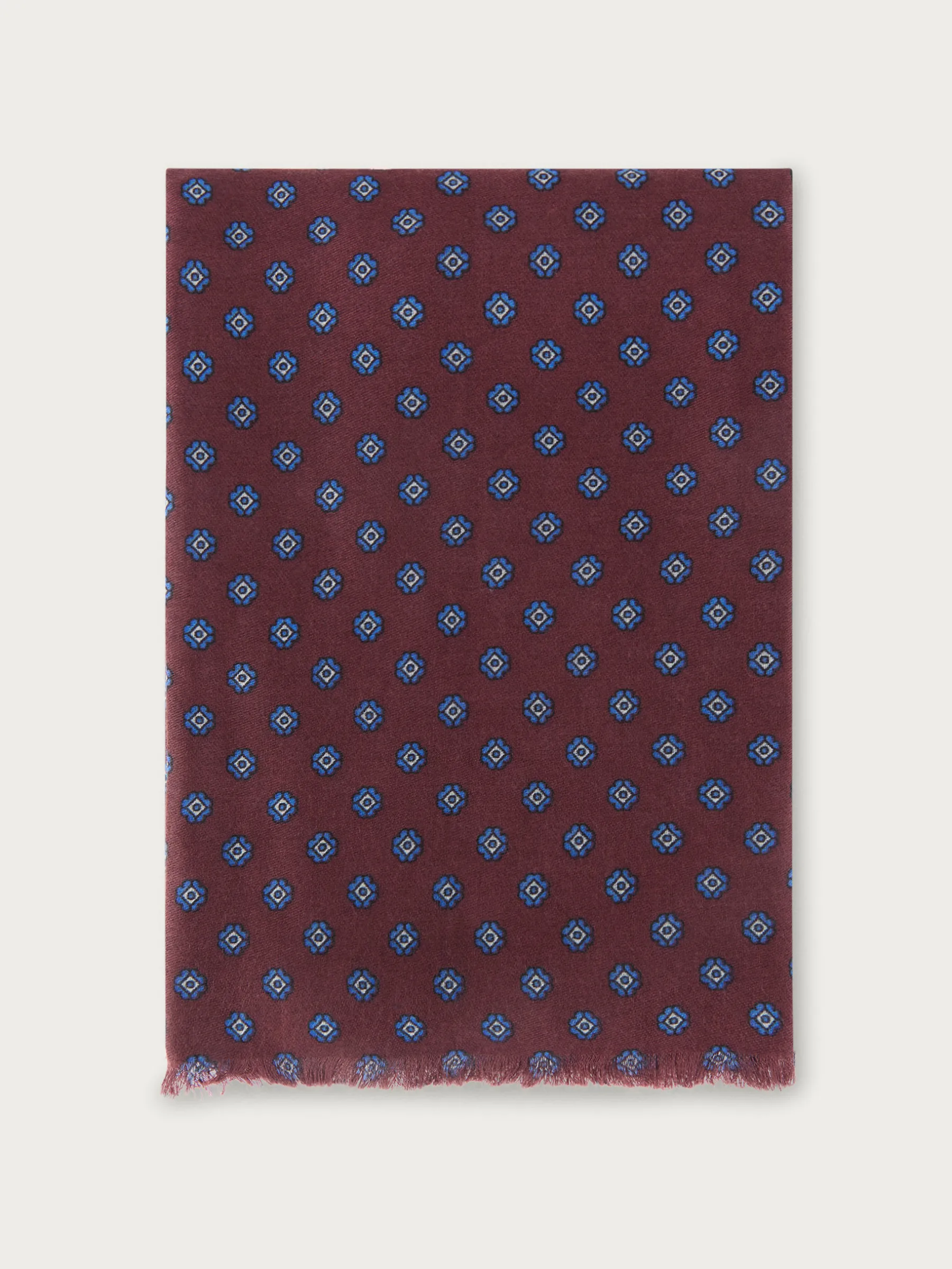 Foulard de diseño personalizado estampado confeccionado en tejido suave y cálido. Terminación con flecos.