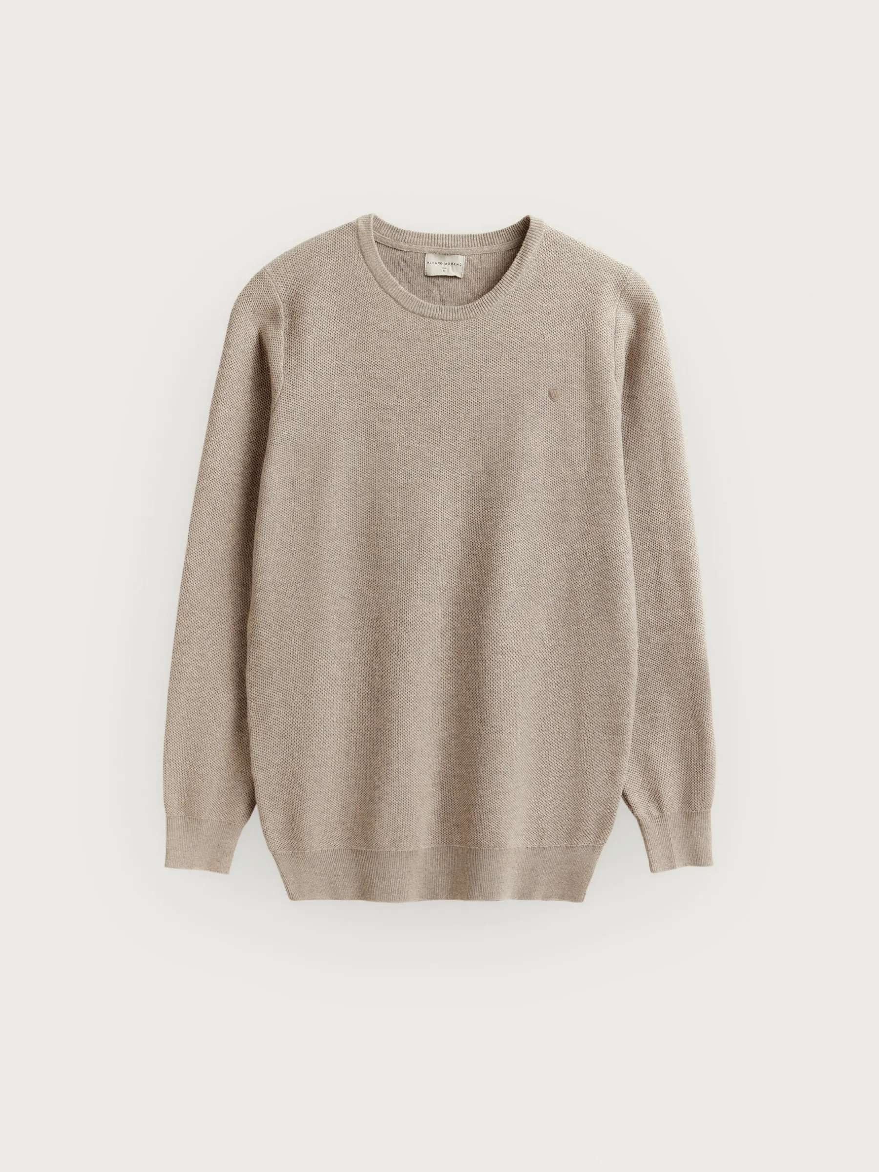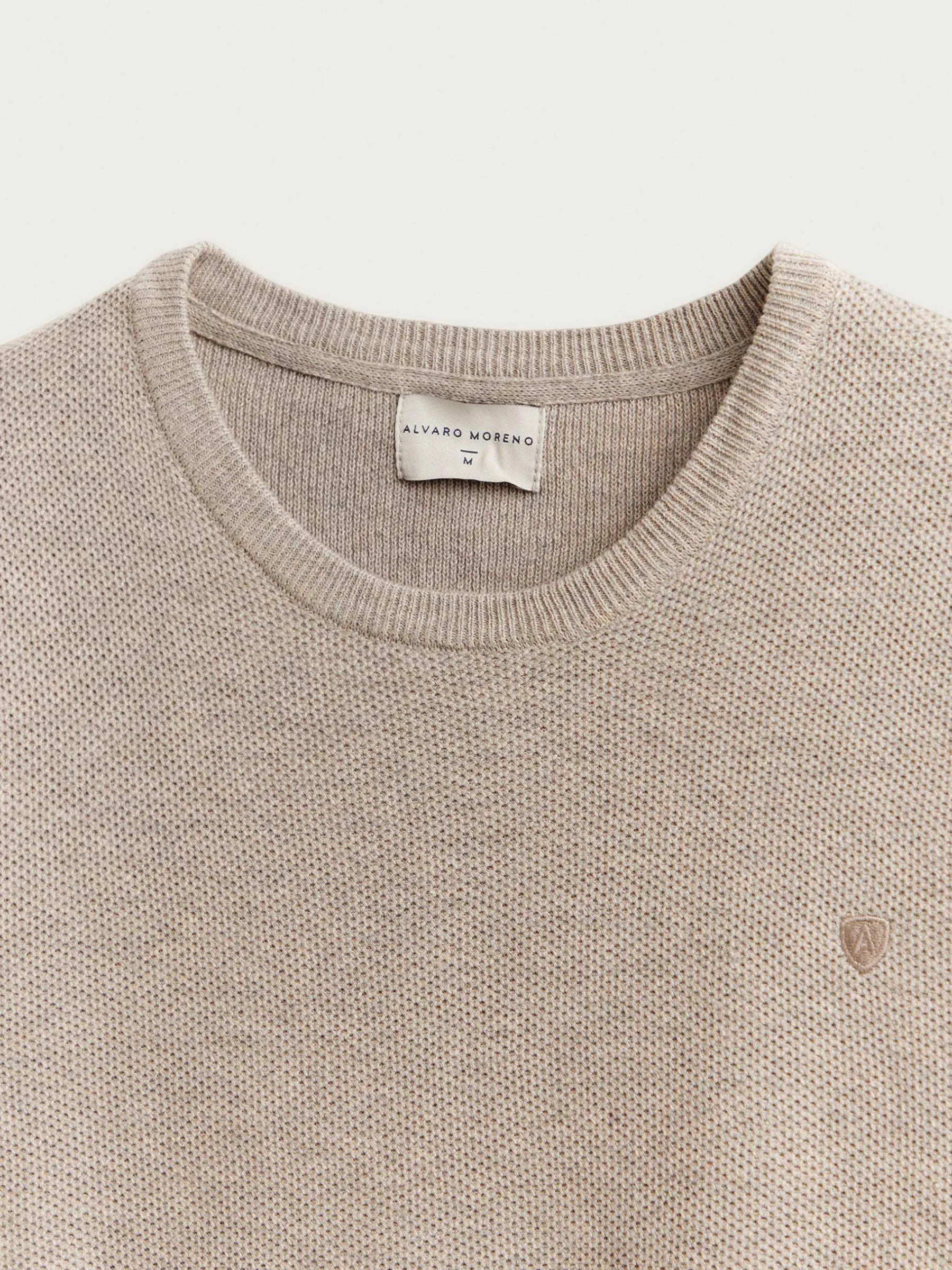 Jersey con tejido de estructura, cuello a la caja y logo de la marca bordado en el frontal al tono. Bajo, puños y cuello en acabado ribeteado de punto elástico para mayor comodidad. Corte regular fit.