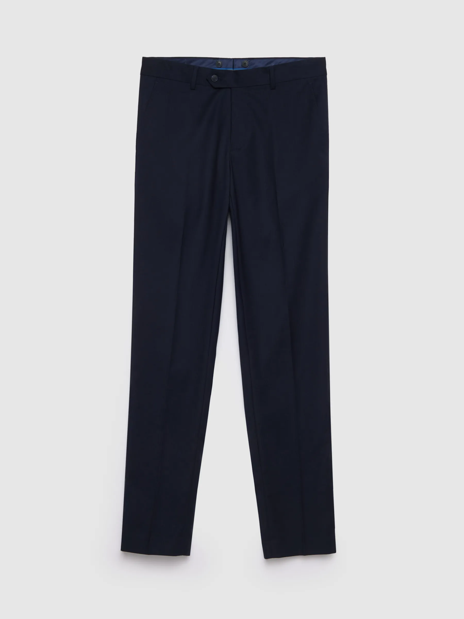 Pantalón de traje que cuenta con cierre frontal de cremallera y botones, dos bolsillos abiertos en la parte delantera y dos bolsillos traseros con cierre mediante botón. Forrado en su interior.