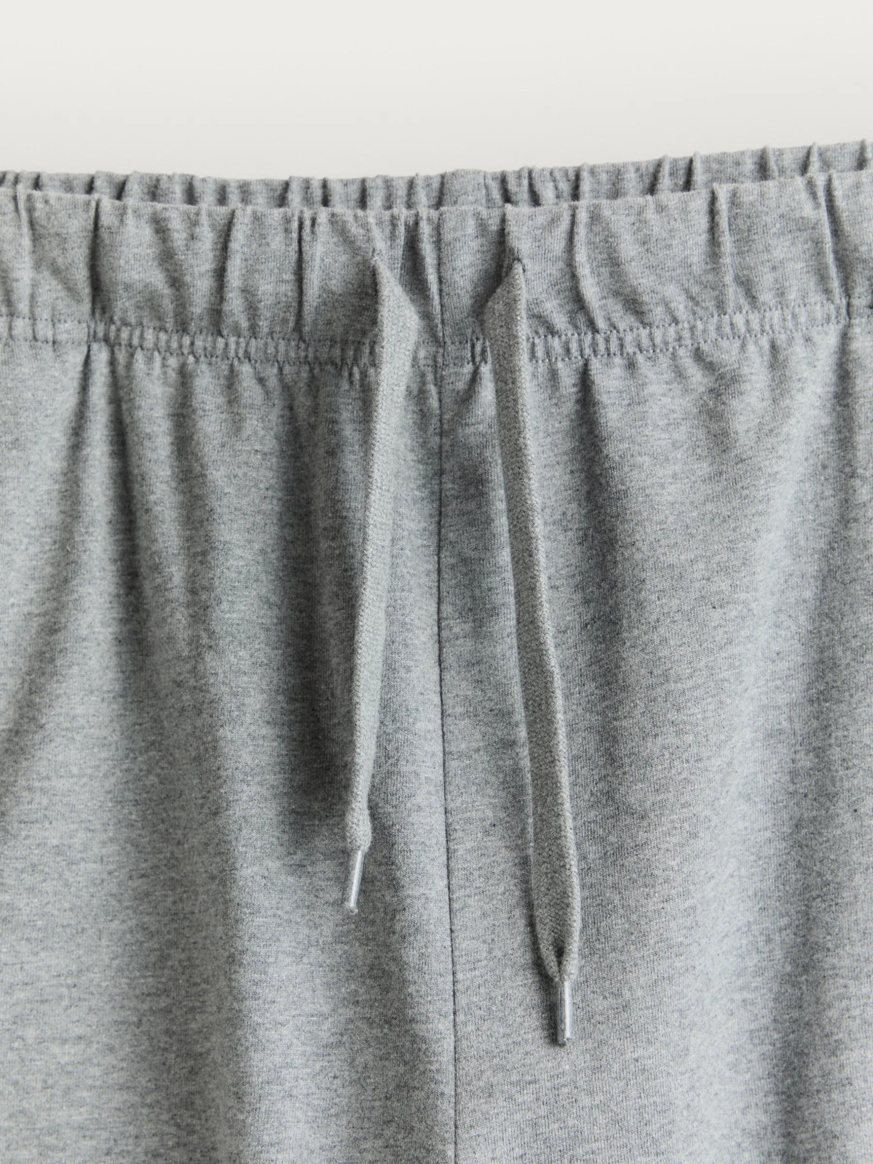 Pijama compuesto por dos piezas, superior e inferior. Parte superior camiseta de manga larga con cuello redondo y estampación personalizada en el frontal. Pantalón liso con cinturilla elástica y cordón ajustable.